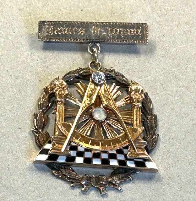 Frimurer vedhæng i 14 k. guldJames O. Wyhn. Master of garden city lodge. 1940.