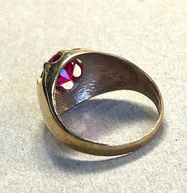 Cocktail ring i 8 K. guld med rød sten. Stmplet BH.BH.