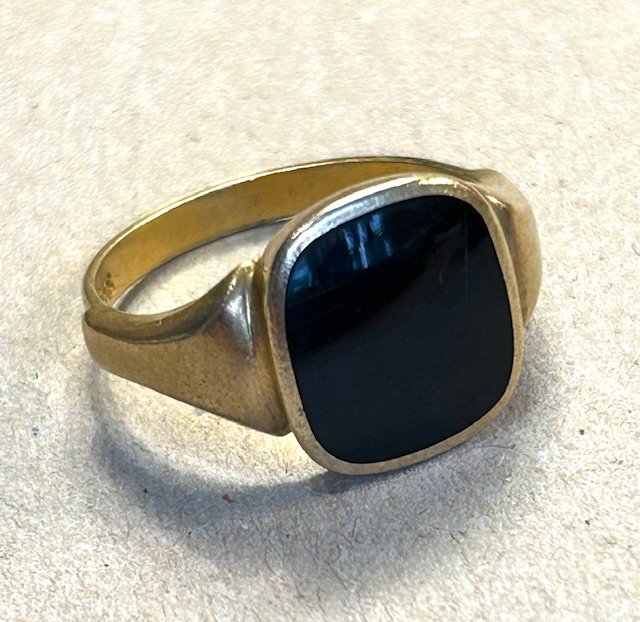 Signetring i 14K. med Onyx. Stemplet 585 HS.