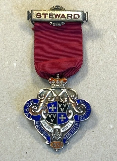 Frimurer vedhæng, StewardEngelsk frimurer medalje fra Royal Mesonic Benevolent Institution 1932.
