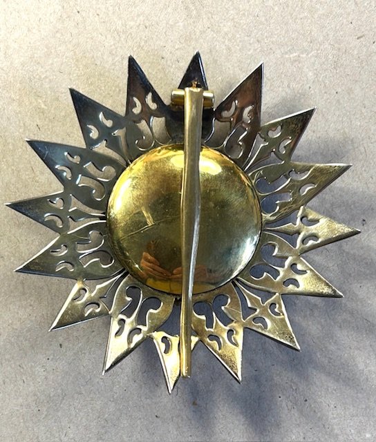 Bryststjerne i sølv, forgyldt og med emalje.