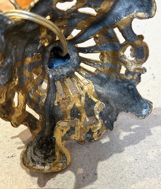 Fransk Art noveau bordlampe i guldmalet hvidmetal, zink legering.