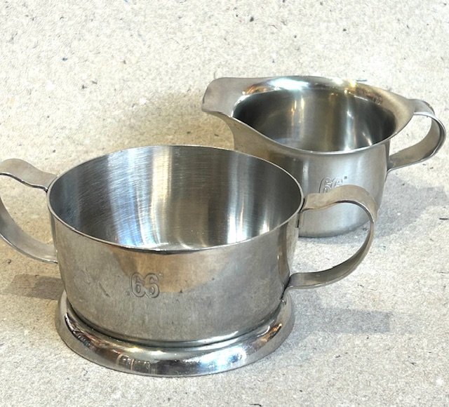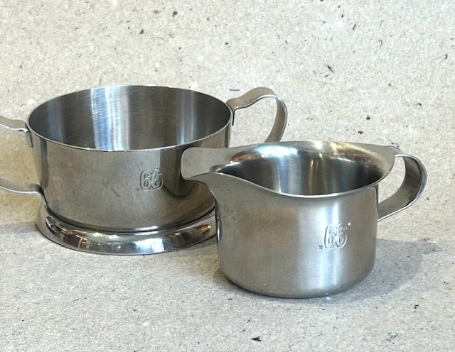 Sukker fløde sæt i rustfrit stål med 66 logo.