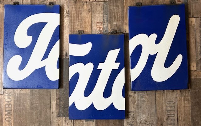 Tatol emaljeskiltTatol, tredelt emaljeskilt for den lille købmands kæde Tatol, 1932 - 1974. Sjlædent skilt med patina og slid men pænt. H 50x100cm.  Hvert skilt 50x33cm.3.500,00 DKK |  |