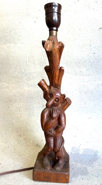 Krølle Bølle lampeBordlampe skåret i træ med motiv af trolden Krølle Bølle.